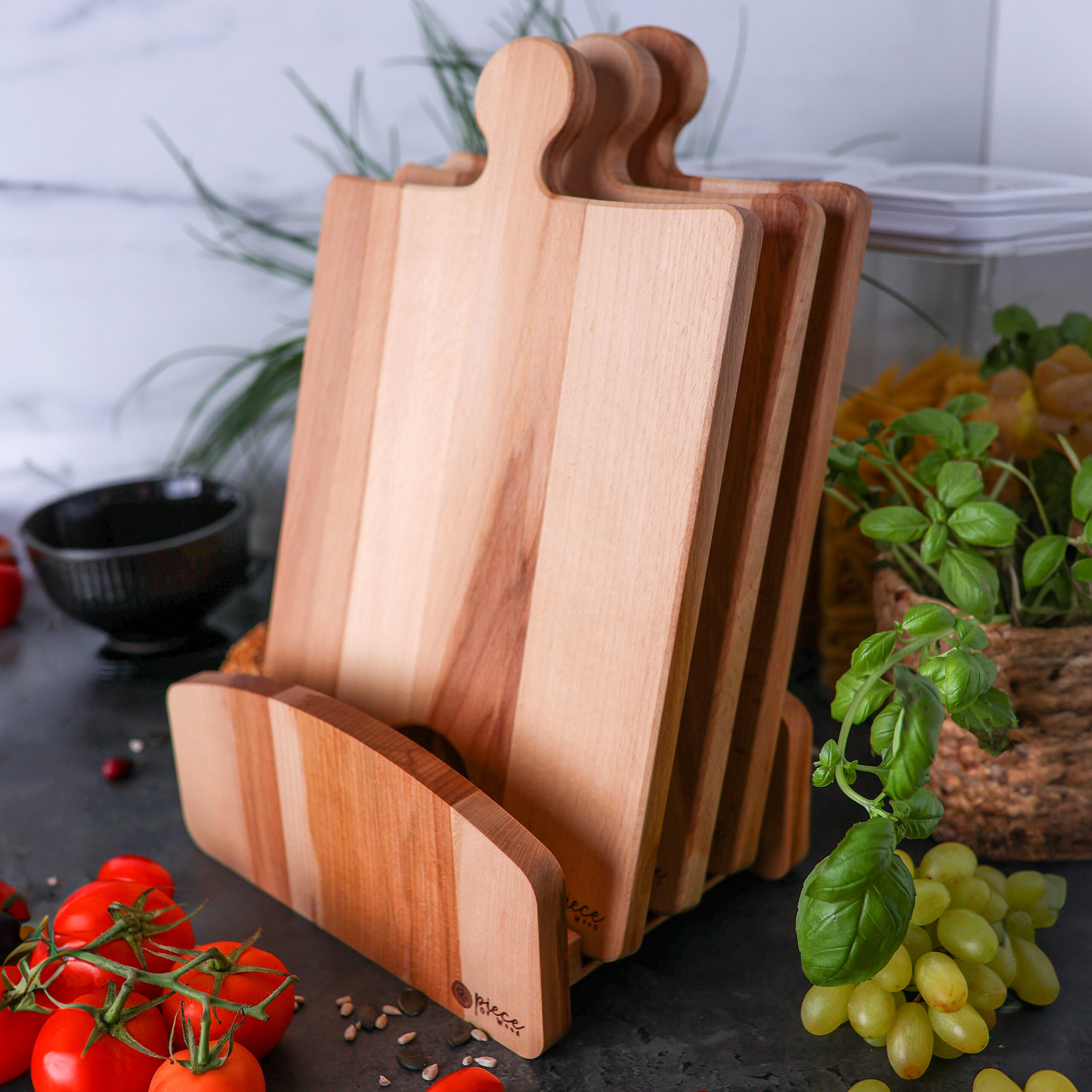 ❗ Zestaw 3 Naturalnych Desek Do Krojenia Na Praktycznym Stojaku – niezastąpiony w każdej kuchni ❗
